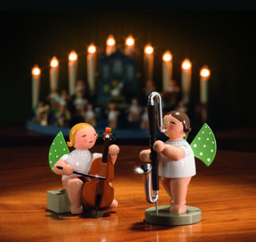 Mit ihrer Gestalt, ihrem Ausdruck und ihrem musikalischen Können verzaubern sie: die Musikantenengel aus dem Hause Wendt & Kühn. Der erste erblickte bereits 1923 das Licht der Welt, gestaltet von Firmengründerin Grete Wendt. Dabei beschritt sie neue gestalterische Wege. Im Kontrast zur traditionellen Erzgebirgskunst, die oftmals eher starr wirkte, ließ sie in ihren Entwürfen eine schwungvolle Dynamik einfließen. Ihr gelang es, die Engel nicht nur statisch dastehen zu lassen, sondern sie zum Musizieren, Laufen und Fliegen zu bringen. Das erreichte sie durch eine neuartige Technologie, die die produktionsbedingte Symmetrie des Drechselns durchbrach: Sie schnitt die Gliedmaßen schräg an und setzte sie danach wieder zusammen, so dass die Figuren in Bewegung und Schwung kamen. Schwung, unbeschwerte Leichtigkeit und Heiterkeit sind genau die Attribute, die Grete Wendts Engel noch heute beschreiben und die sie weltweit zu beliebten Sammlerstücken machen. Arrangiert im großen Orchester spielen sie die schönsten Stücke. Und auch als kleinere Formation im Quartett oder Quintett ziehen sie ihre Betrachter klangvoll in den Bann.
