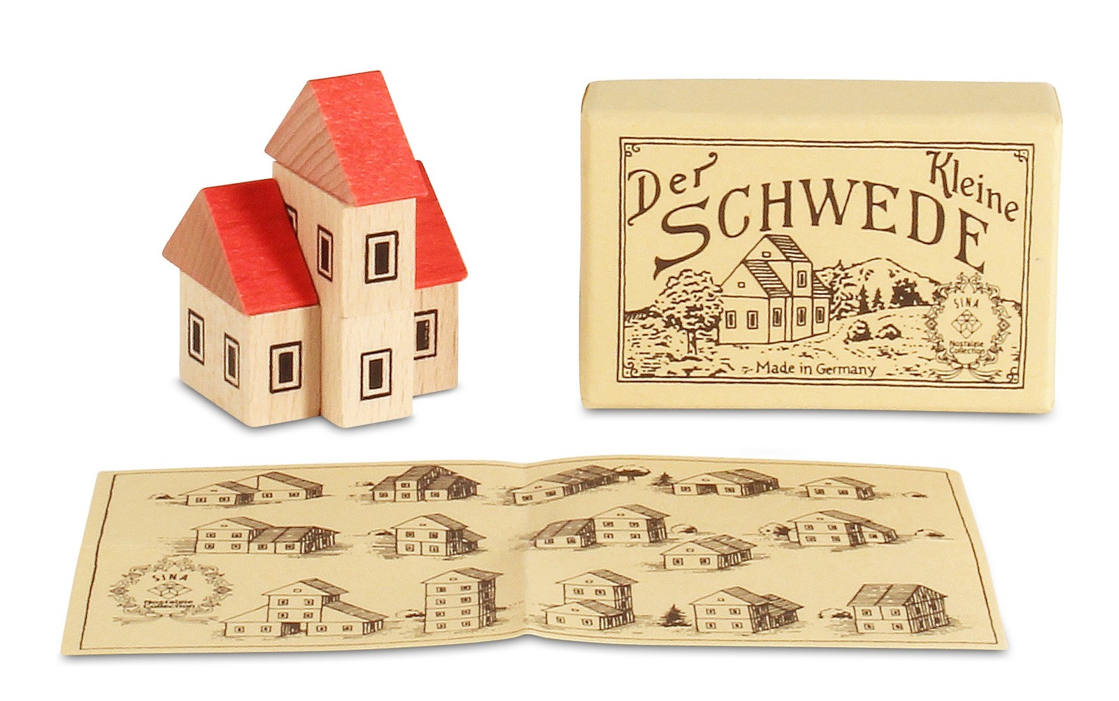 Ein Spielzeug mit Historie: 1908 wurde dieser erste Baukasten in der Zündholzschachtel von der ehemaligen Spiel- und Holzwarenfabrik S.F. Fischer Oberseiffenbach (Erzgebirge), gegründet 1850, in die Produktion aufgenommen und vom Kaiserlichen Patentamt auf Grund des Gesetzes zum Schutz der Warenbezeichnung vom 12. Mai 1894 in die Zeichenrolle eingetragen. Der kleine Schwede hat fast 100 Jahre deutscher Baukastengeschichte mit allen ihren Krisen überlebt und wird heute noch bei SINA produziert und verkauft.