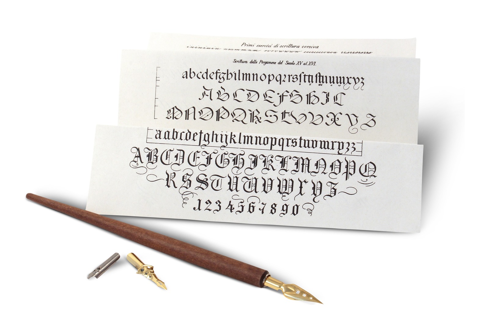 | Inhalt | 9 Schreibfedern, Holzfederhalter und Kalligrafie-Schreibvorlage |