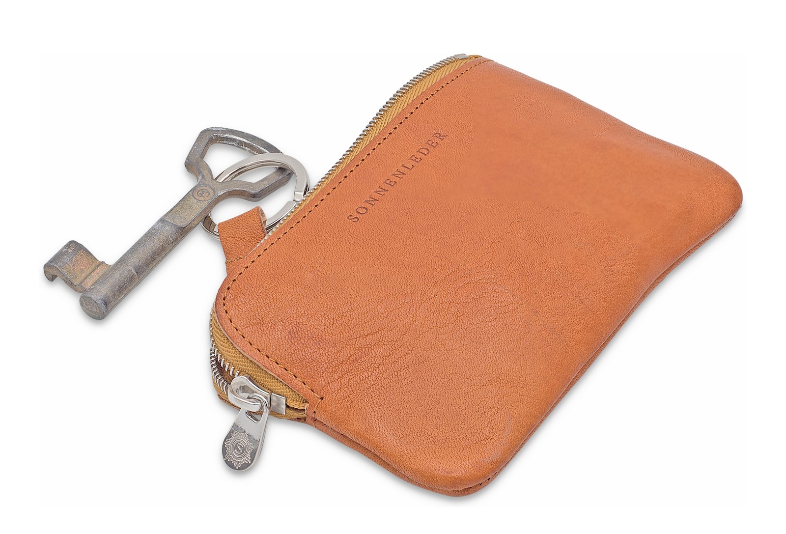 Endlich ein Schlüsseletui in einer schlanken Ausführung ohne Keder. Das Reißverschlussfach kann weit geöffnet werden. Dies hat Sonnenleder durch den um die Ecken laufenden Reißverschluss realisieren können.