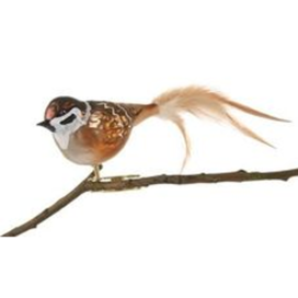 Als mundgeblasener Glasvogel ist unser Feldsperling mit seinen prächtigen Naturfedern ein bunter Hingucker an Ihrem dekorativen Weihnachtsstrauß oder ein gern gesehener Besucher in Ihrem Christbaum.