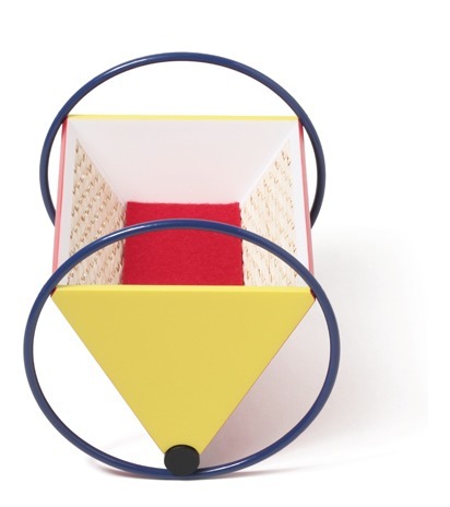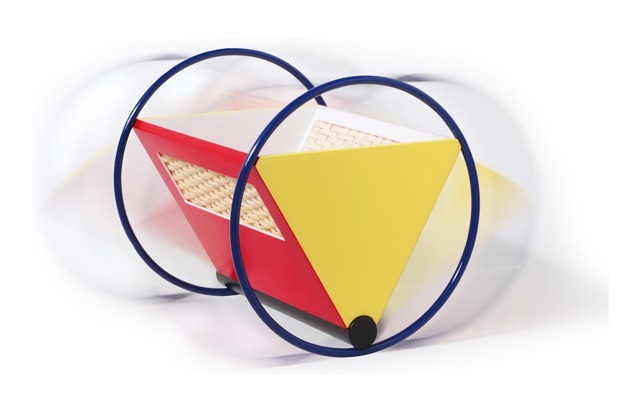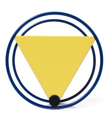 Schlicht und reduziert, zusammengesetzt aus zwei blauen Kreisen (Ringen), roten Rechtecken und gelben Dreiecken, symbolisiert die Wiege das Bauhaus-Design besonders gut, denn Farbe, Form, Komposition waren Elemente der Bauhauslehre.