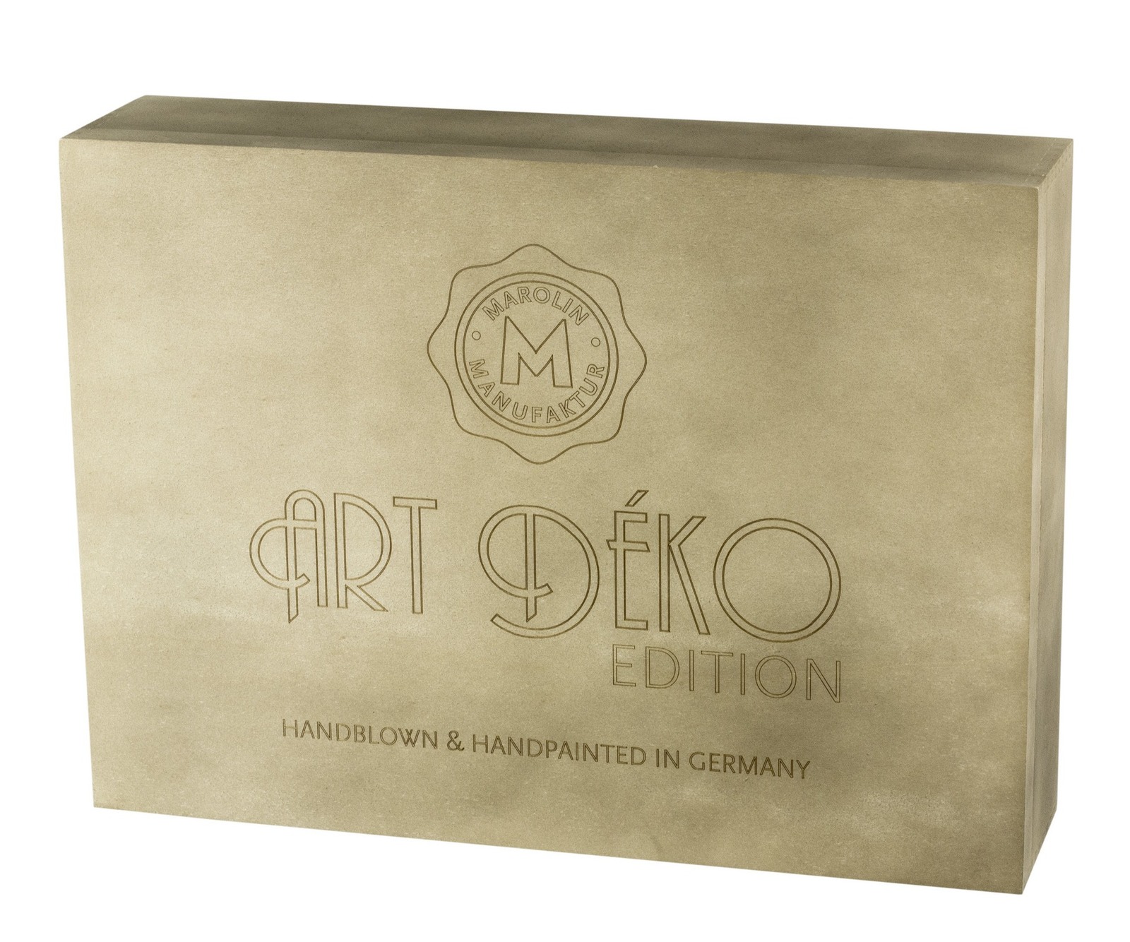 Zeitloser Glasschmuck im Art-Déco -Stil verpackt in dekorativer Holzbox.