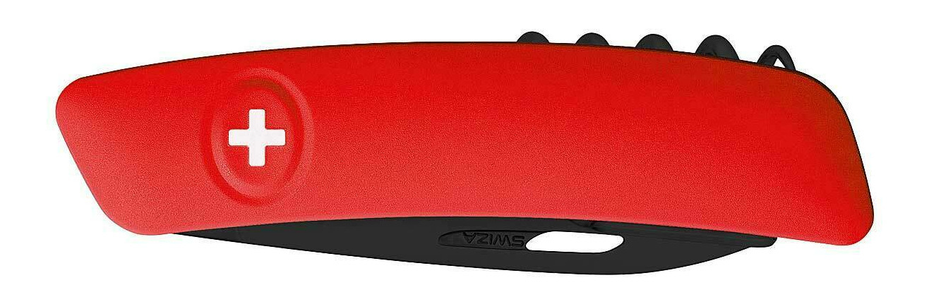 Mit dem SWIZA D01 ALLBLACK bringt der Schweizer Hersteller ein Messer auf den Markt, das alle Blicke auf sich zieht. Das schwarze Messer ist mit einer hoch widerstandsfähigen, tiefschwarzen Hightech-Beschichtung aus Polytetrafluorethylen (PTFE) ausgestattet. Die 75mm lange Klinge aus PVD-beschichtetem Edelstahl 440 (gehärtet auf 57 HRC) arretiert und lässt sich durch Druck auf das Schweizer Kreuz - Markenzeichen von Swiza - wieder einklappen. Die leichte Krümmung des Messers ermöglicht ein müheloses Aufklappen aller Werkzeuge, die rote Anti-Rutsch-Oberfläche erleichtert eine intuitive Handhabung. Das D01 besitzt außerdem eine Stech- und Bohrahle, eine Pinzette mit abgeschrägter Spitze und einen Sommelier-Korkenzieher mit 5 Windungen.