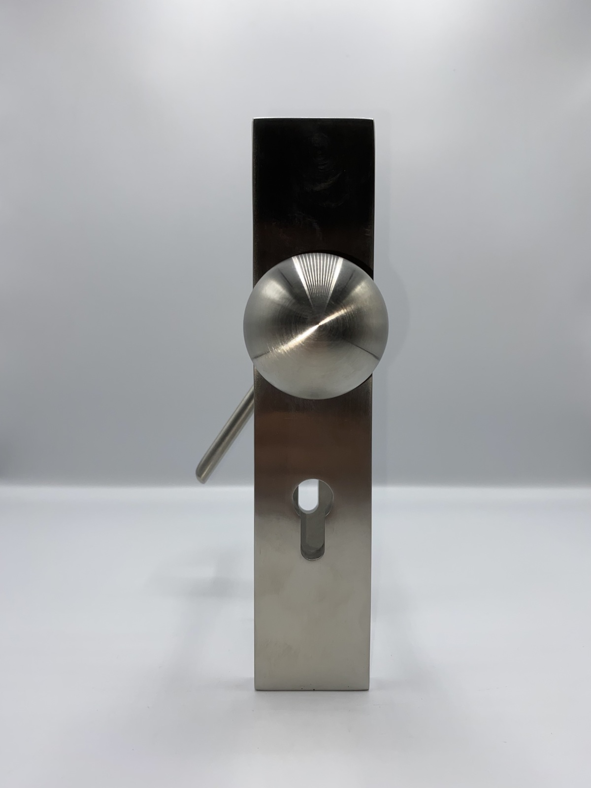 Dieser Türgriff und die dazugehörige Fensterolive wurde um 1928 von Wilhelm Wagenfeld in der Staatlichen Bauhausschule in Weimar entworfen und daraufhin von der Berliner Firma S.A.Loevy produziert.
