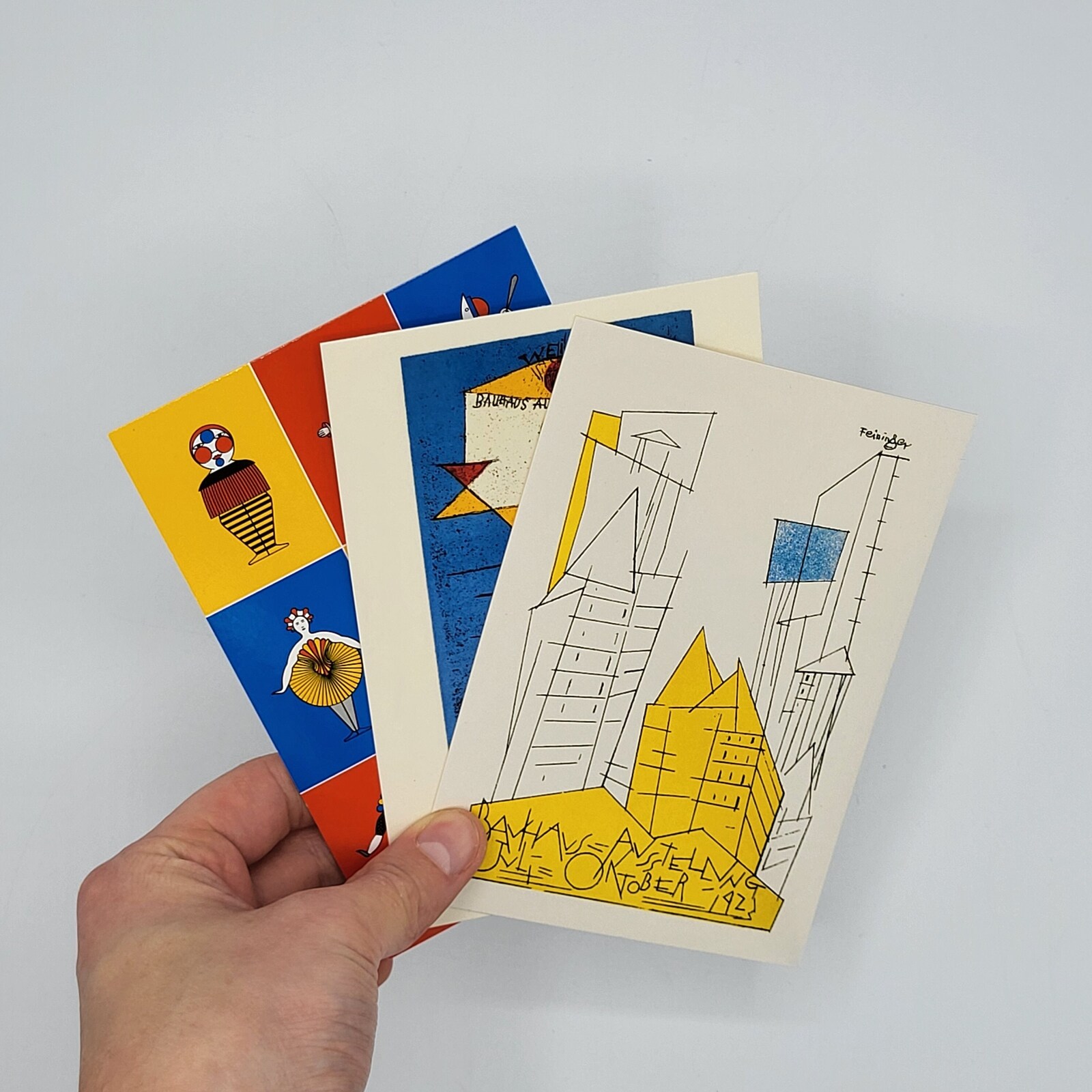 Die Postkarten zeigen markante Motive aus der Bauhaus-Ära – gestaltet von prägenden Künstlern wie Lyonel Feininger, Oskar Schlemmer, Paul Klee und anderen. Die Karten zeigen typische Bauhaus-Gestaltungen: klare Linien, reduzierte Formen und starke Farbkontraste. Jede Karte bringt ein Stück Designgeschichte mit – sei es als Gruß, Sammlerstück oder dekoratives Element. Ideal für alle, die die Ästhetik der klassischen Moderne schätzen.