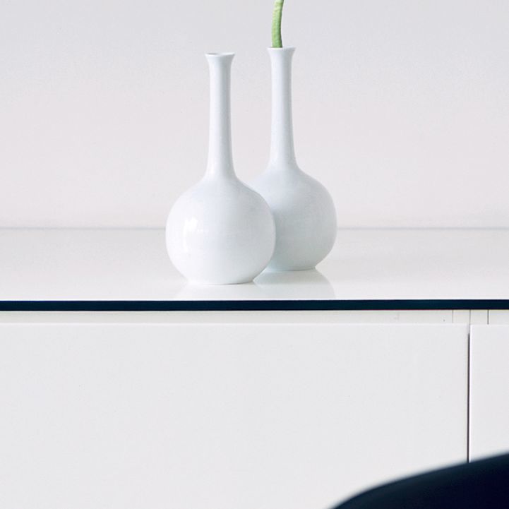 gebundenen und verzierten Sträußen passt. Ihre zurückhaltende Form hebt jedes farbige Gebinde hervor. Die Vase wurde 1934 für Fürstenberg entwickelt.