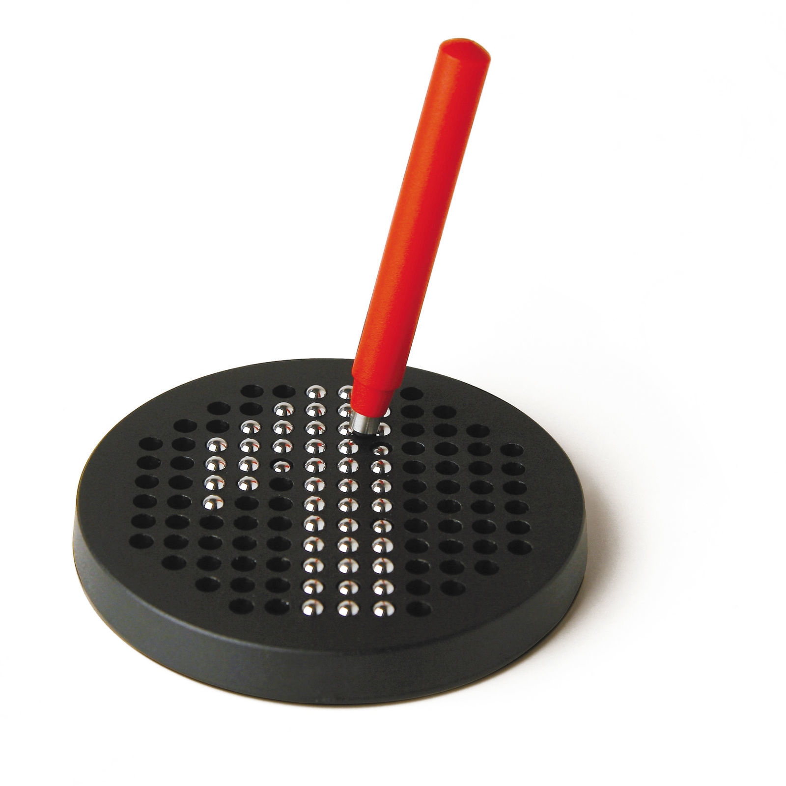 Mit Hilfe des magnetischen Stabes enstehen immer wieder neue Motive aus Kugeln auf der Spieloberfläche. Der Schweizer Spielzeughersteller Naef ist spezialisiert auf die Produktion von hochwertigem Spielzeug.