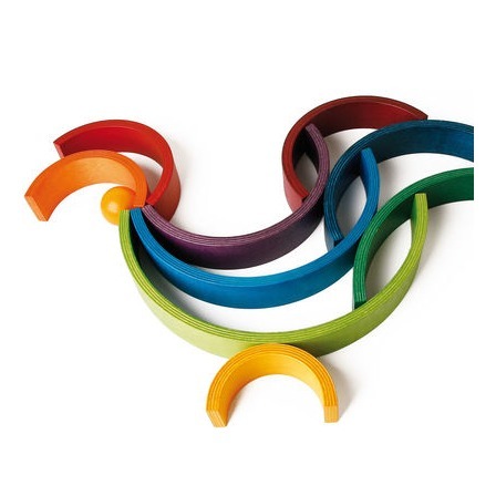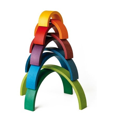 ![]() Das Rainbow Spiel von Naef besteht aus neun variablen Bogenelementen aus Holz. Spiel-, Klang- und Kunstobjekt zugleich. © naef spiele |