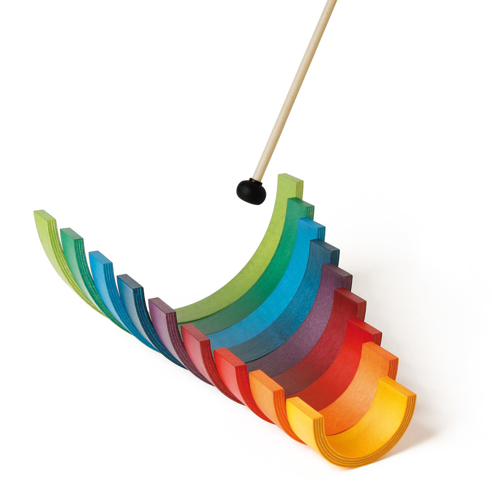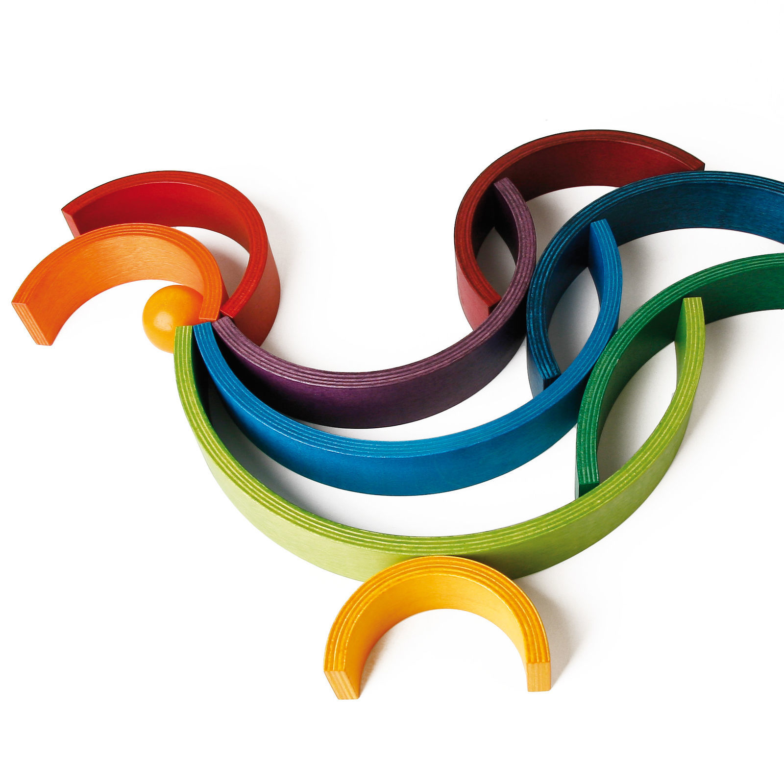 ![]() Das Rainbow Spiel von Naef besteht aus neun variablen Bogenelementen aus Holz. Spiel-, Klang- und Kunstobjekt zugleich. © naef spiele |