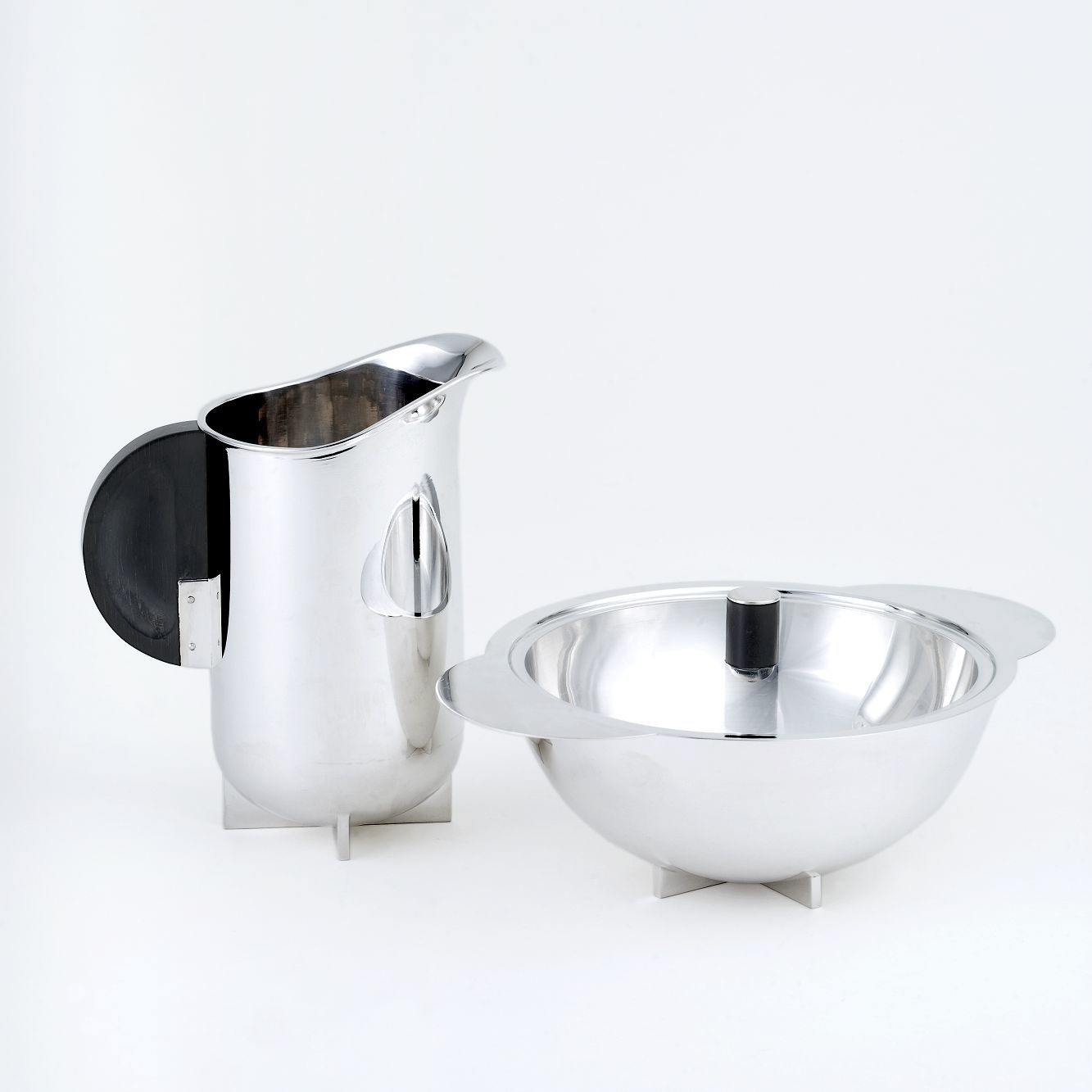 Sterlingsilber massiv geschmiedet und mit Ebenholz kombiniert nach einem Entwurf von Marianne Brandt aus dem Jahr 1924.