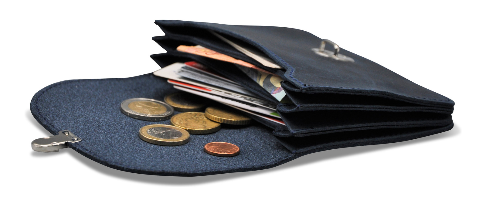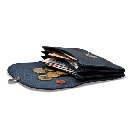 Die Geldbörse Borsa L bietet mit vier großen und sechs kleinen Fächern eine einfache Platzaufteilung für Banknoten, Kleingeld und Kreditkarten.