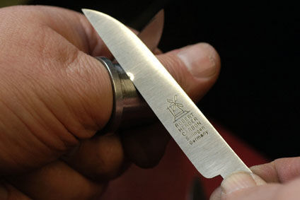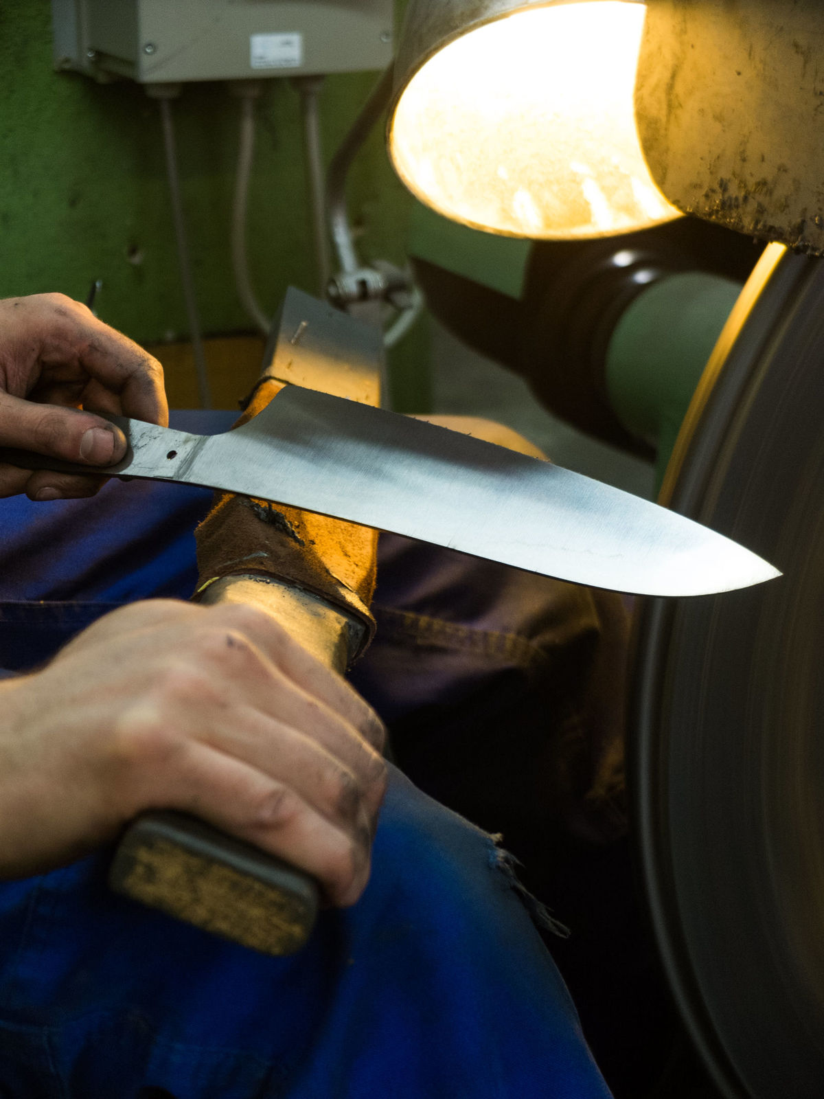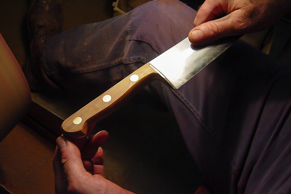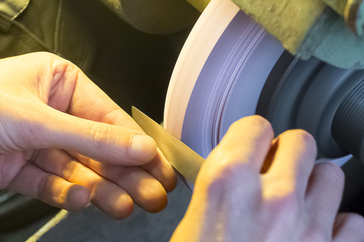 Wer je mit einem Solinger Dünnschliff in der Küche geschnitten, filetiert, gehackt, geschält und geschmiert hat, zelebriert mit Leichtigkeit den präzisen Schnitt. Kaum eine Manufaktur beherrscht noch das Handwerk des Fein- oder Blauließtens auf der Lederscheibe, das Abziehen, Schuren, Reiden und Ausmachen. Diese Arbeiten benötigt viel Zeit, Feingefühl, Geschick, Geduld und ein gutes Auge, um die gewünschte Qualität zu erzielen, wie wir sie bei Windmühlenmesser gefunden haben.