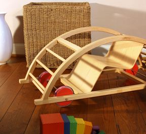 Es waren die Ideen des BAUHAUSes, die den jungen Hans Brockhage auf den richtigen Weg führten. Die Bewegungslust der Kinder, die doppelte Funktion und die sparsame Ästhetik der Form sind in ihrer Summe die Basis des genialen Schaukelwagens, der vorerst an den VW-Käfer erinnert. Das war im Jahre 1950. Und fortan erkannte die Welt, dass der Schaukelwagen den Spielfreuden der Kinder und den Augen der Erwachsenen gut tut. Ein, im ehrlichen Sinne des Wortes, einfaches Spielgerät wurde zur Design-Ikone.