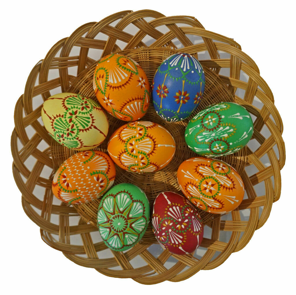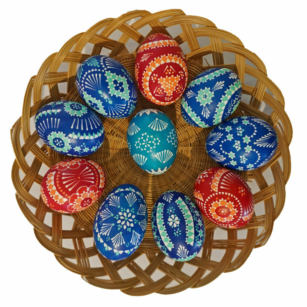 Traditionell werden Hühnerei bemalt, teilweise werden aber auch Wachteleier oder Straußeneier verwendet.