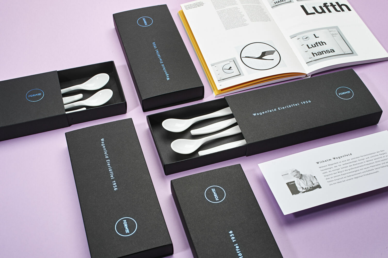 Die bei FORMOST exklusiv erhältlichen Eierlöffel stammen aus einer Geschirrserie, die Wilhelm Wagenfeld 1955 für die Deutsche Lufthansa entworfen hatte. Das Tafelgeschirr aus Melamin und Durmelit, zwei verschiedene Kunststoffe, wurde für die Verwendung im Flugzeug entwickelt. Seine Gestaltungsidee war es, ein leichtes, robustes und ästhetisch ansprechendes Produkt zu schaffen, das den spezifischen Anforderungen der Luftfahrt gerecht wird. Durch die Verwendung von Kunststoff als Material konnte er eine einzigartige Kombination aus Leichtigkeit und Widerstandsfähigkeit erreichen, während er gleichzeitig eine klare und zeitlose Formgebung beibehielt.