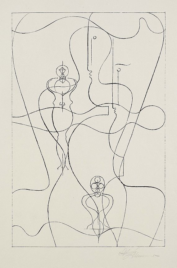 Mir war es gelungen einen Termin zu bekommen und es blieb ein unvergessener Tag. Besonders der Briefwechsel von Oskar Schlemmer hatte mich tief für diesen Künstler eingenommen und für mich war er der einzige Künstler am Bauhaus, dessen Werk in der Gegenwart fruchtbare Ansätze enthielt. Dass sich diese gefühlte Gewissheit im Nachdenken immer wieder verunklärte, führte mich oft zu den unglaublich verstreuten Originalen. Einen guten Bildband zum Lebenswerk gab es auch nicht. Damals wußte ich nichts über die restriktive Politik der Erben und dachte allein eine kleine Produktion und der Krieg wären die Ursachen.