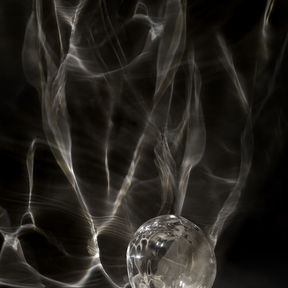 Ripple is a moving light piece that expresses the beauty of the material glass, celebrating the process of it’s making. Each Ripple set contains a large rotating projection dome and a smaller light dome ensconcing the light source. A focused beam of light projects from the lighting dome through both walls of the mouth-blown, unevenly shaped and gently rotating projection dome. This creates a play of shadow and light in an ever changing, moving ripple pattern – beauty that goes beyond the material itself.